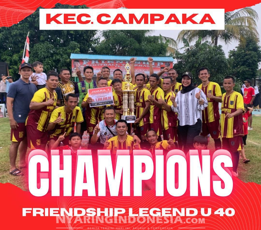 Purwakarta, NyaringIndonesia.com — Turnamen sepak bola Friendship Cup U-40 antar kecamatan se-Kabupaten Purwakarta resmi berakhir dengan kemenangan tim Kecamatan Campaka Legend.