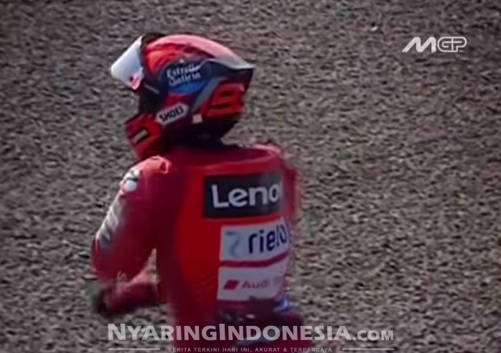 Lombok Tengah, NyaringIndonesia.com – Pembalap Ducati Lenovo, Marc Marquez, kembali gagal menaklukkan Sirkuit Internasional Pertamina Mandalika dalam gelaran MotoGP Indonesia 2025, Minggu, 5 Oktober. Juara dunia MotoGP musim ini itu terjatuh pada lap pertama, tepatnya di Tikungan 7, usai bersenggolan dengan pembalap Aprilia Racing, Marco Bezzecchi.